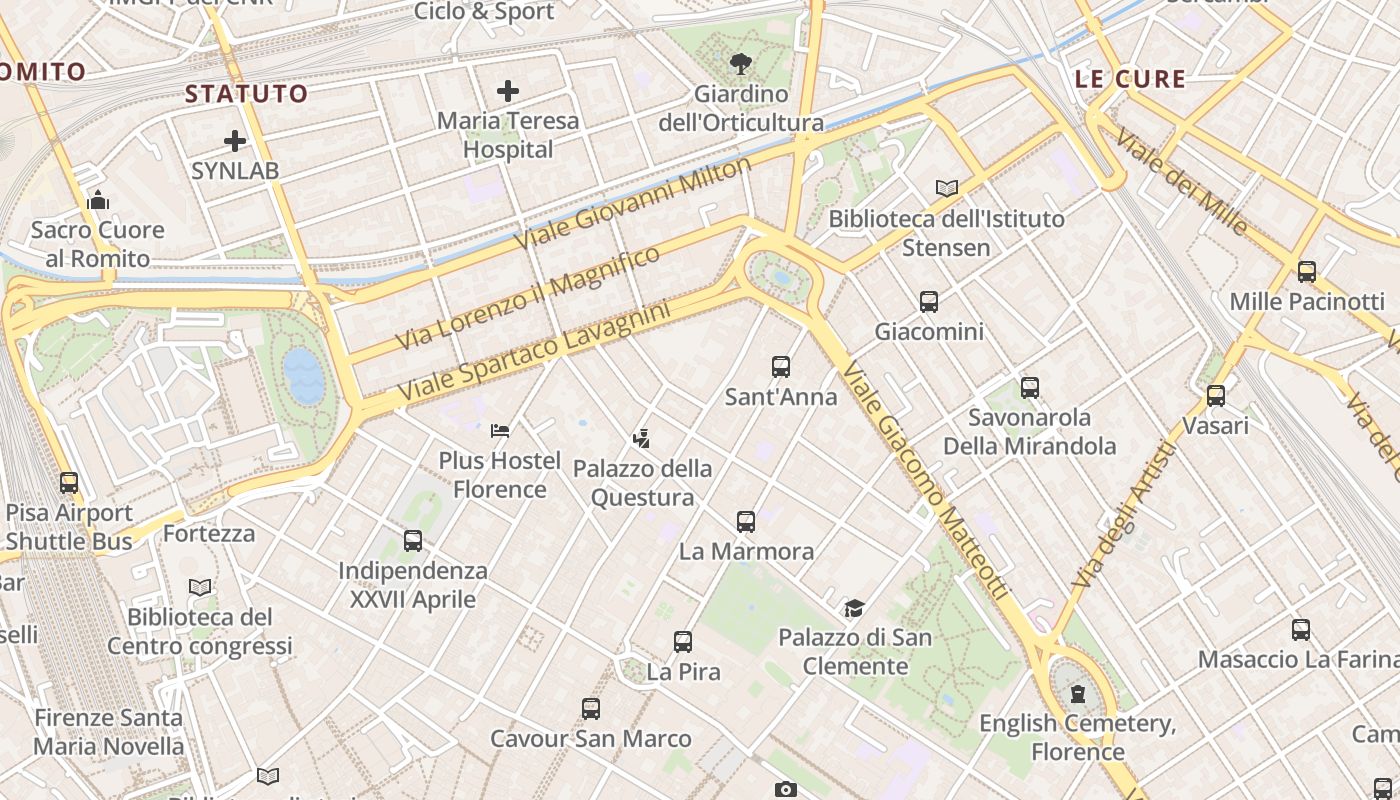L'hotel est placé non loin du Musée Galleria dell'Accademia dans une partie vieille de Florence. Situé à 400 mètres du Musée Opificio delle Pietre Dure, Palazzo Ricasoli se trouve à 1 km de la Fontaine de Neptune. Les clients trouveront une foire commerciale près cet hébergement. Le Musée du Bargello est à côté de l'établissement. L'arrêt de bus le Lavagnini Porta San Gallo est à moins de 5 minutes de marche.